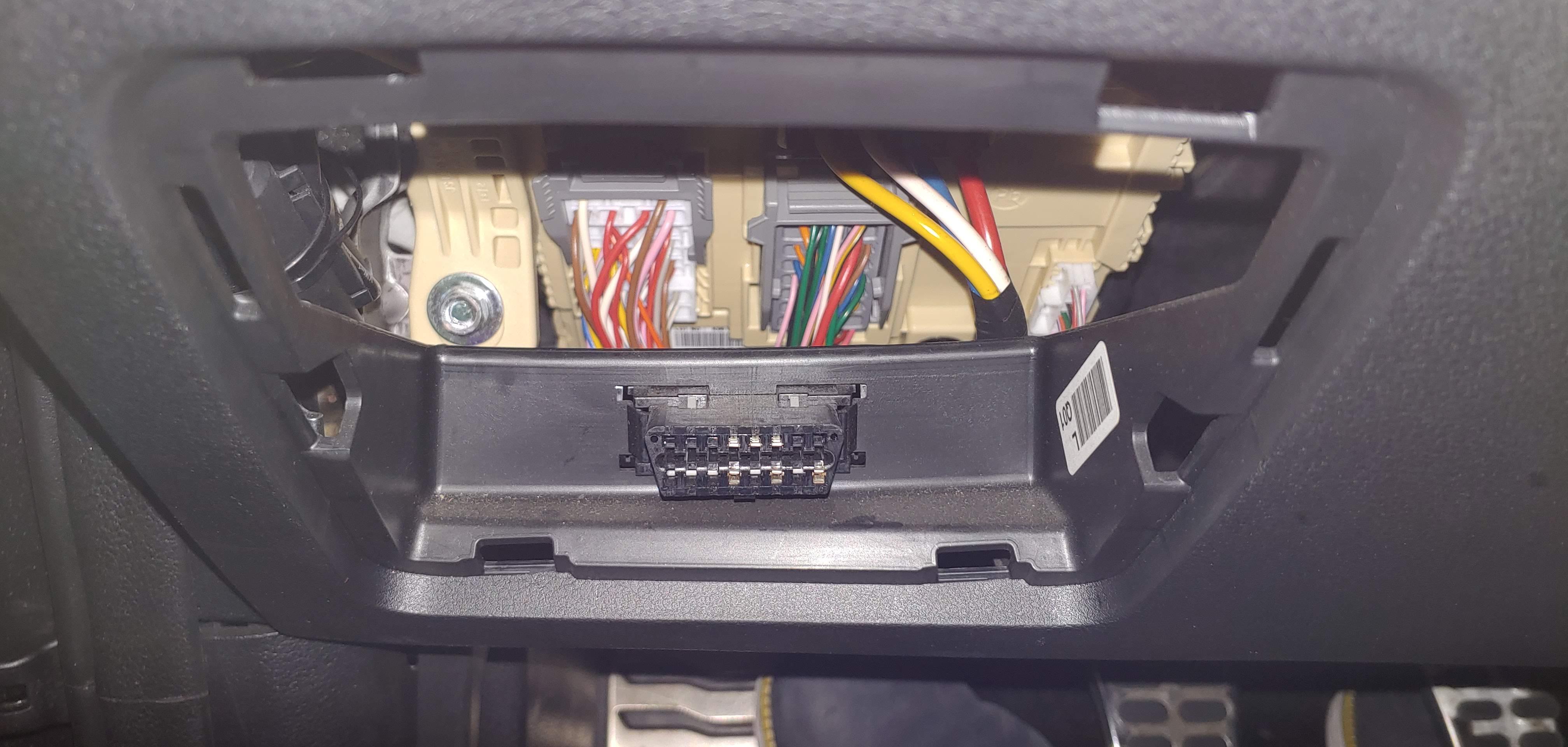 그래서 차에 가서 벨로스터N의 OBD2 단자를 살펴봤다. 위치는 운전석 왼편 하단. 본넷(또는 후드) 여는 곳 바로 위.