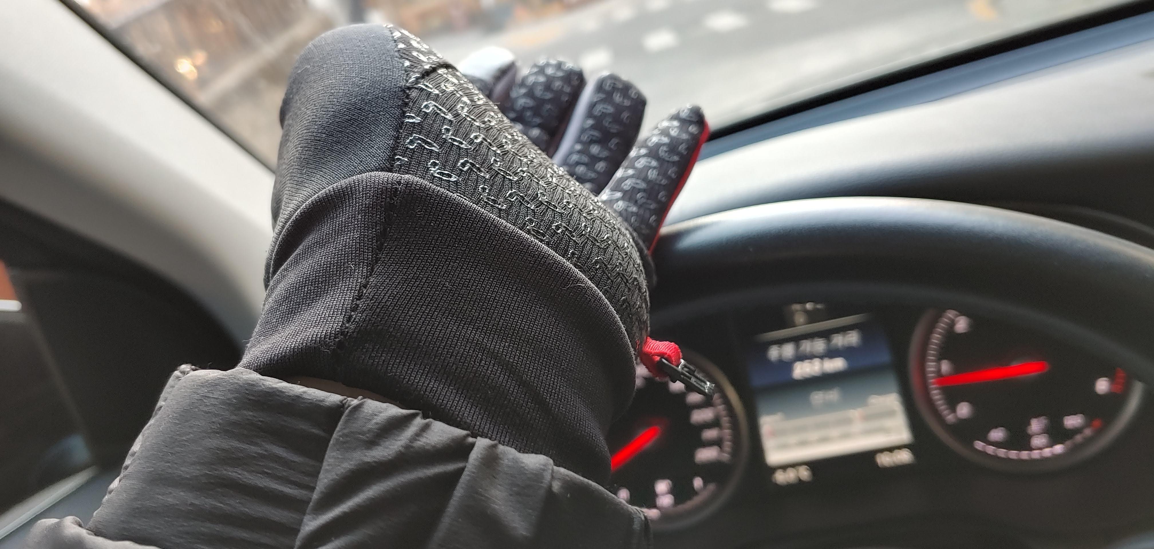 아주 좋다. 두겹이라 하나도 손 시렵지 않다. 운전도 가능할 만하고 두 장갑 모두 검지 끝은 스마트폰 터치 가능하게 처리되어 있고 바닥은 엠보싱? 미끄럽지 않게 처리.