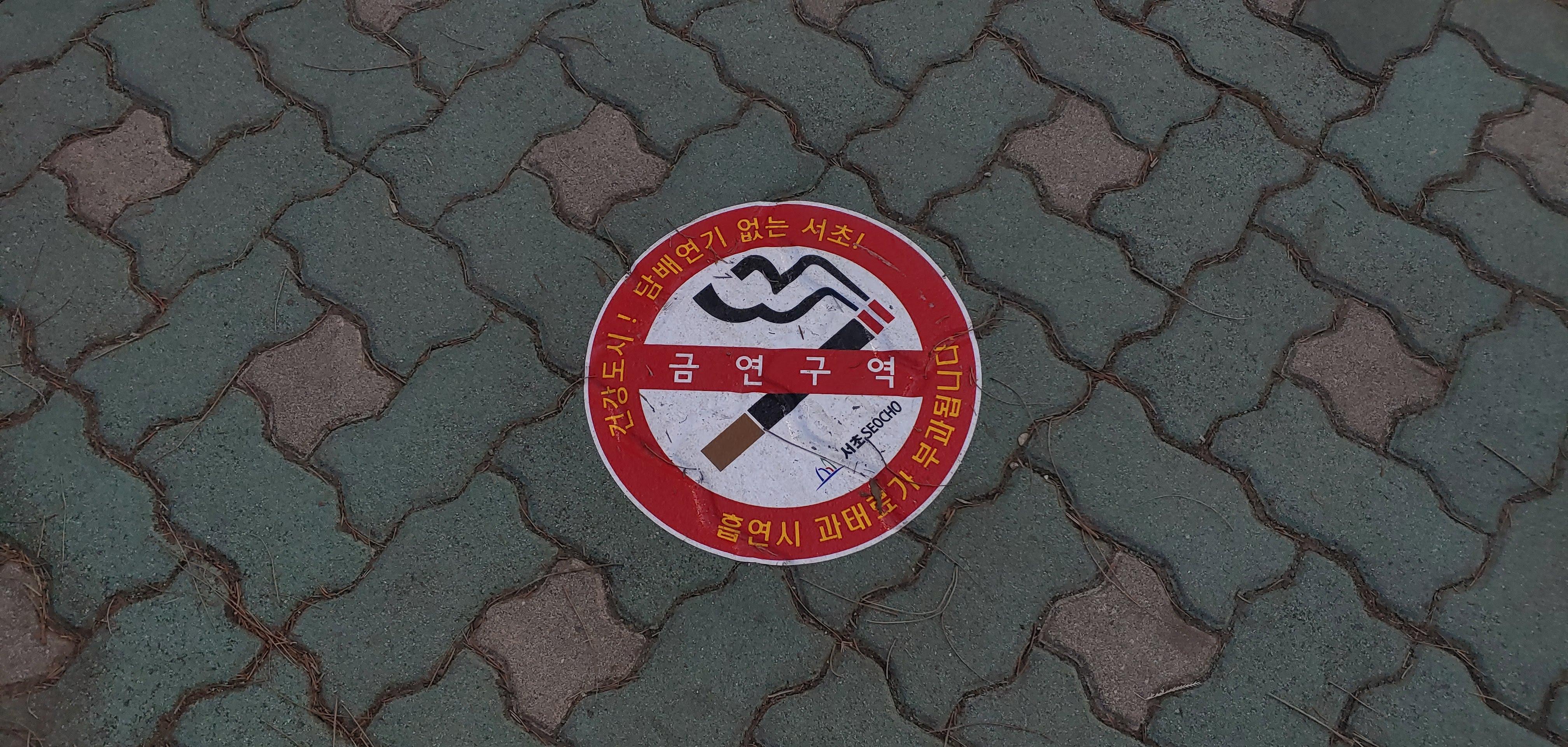 그리고 요즘 양재동 바닥 곳곳에 붙어 있는 매우 지랄스런 금연구역 표지.