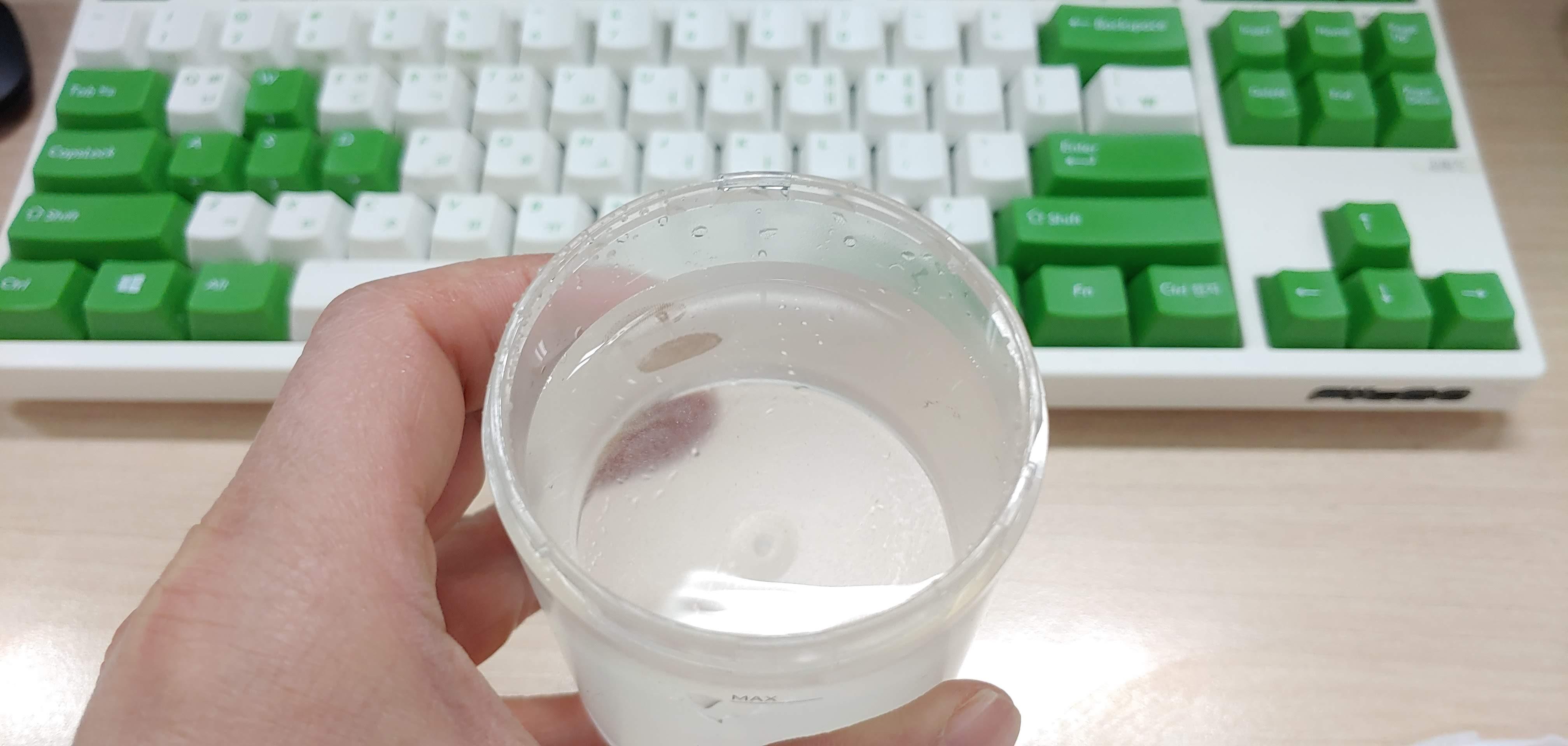 물통은 일반적인 자판기 커피 종이잔 보다 약간 큰 정도라 딱 물 한잔. 급할 땐 물잔으로 써도 되겠다.