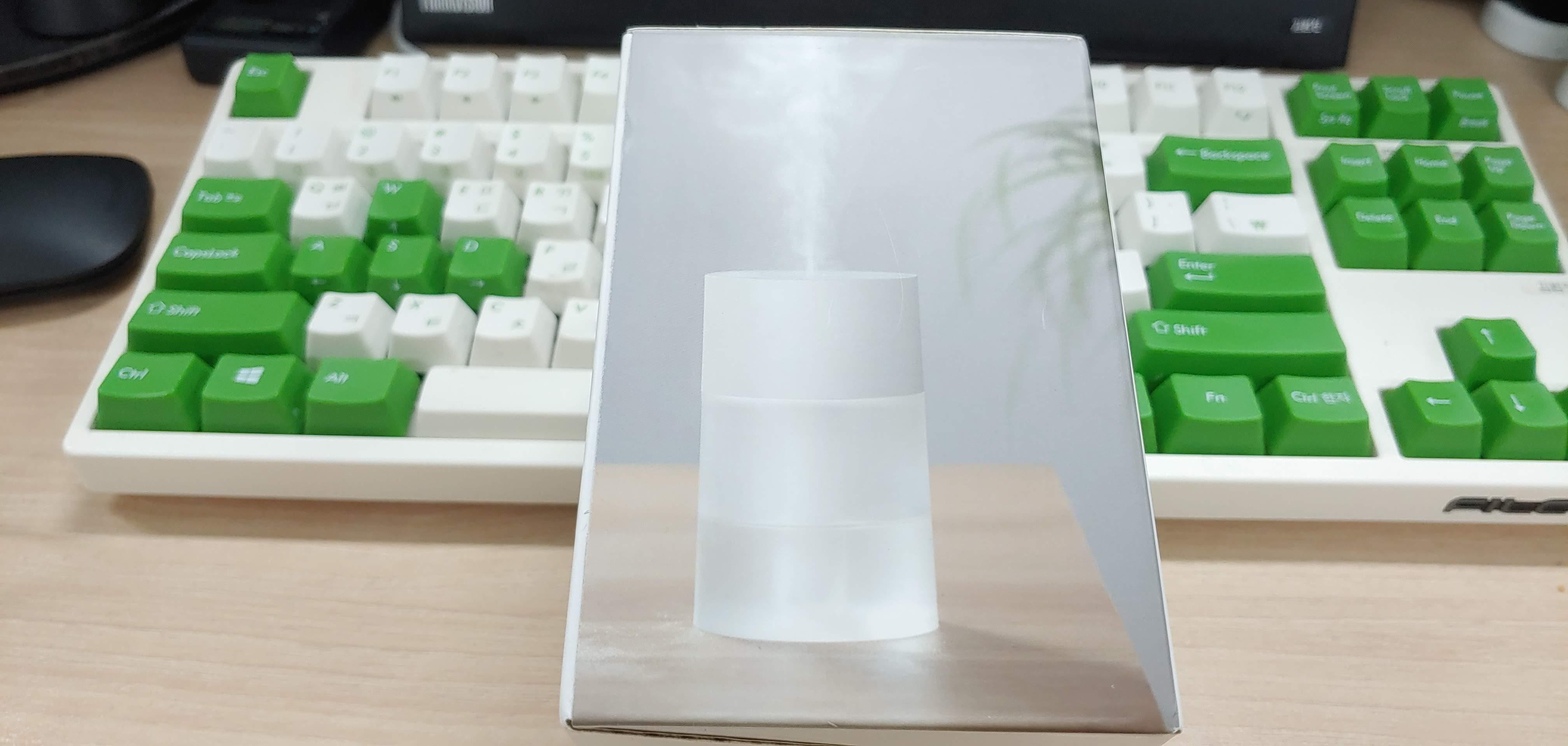 마우스를 옆에 뒀을 때 이정도 크기. 일하는데 옆에서 아른 아른 물안개가 오르는 것이 기분 괜찮다.