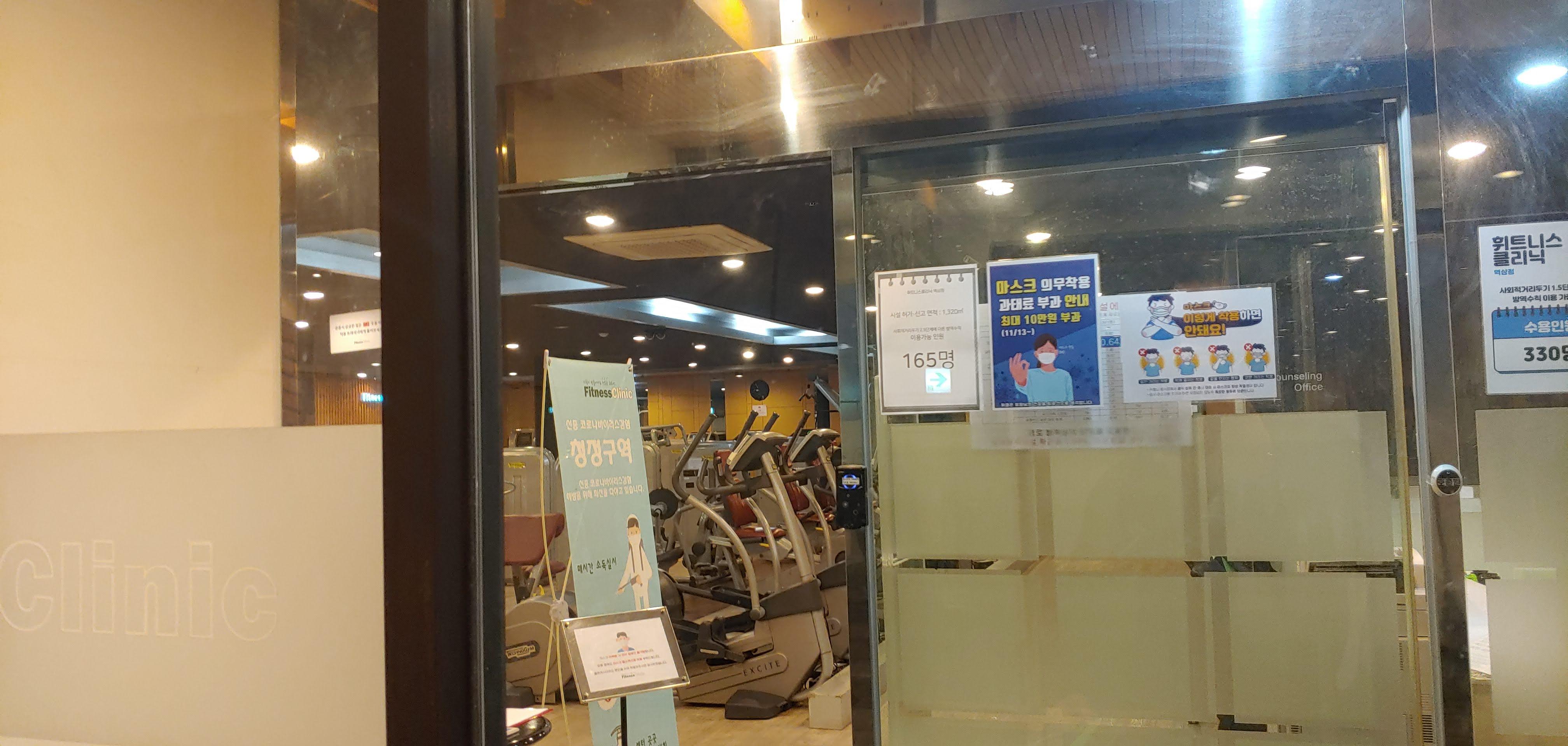 저녁 퇴근 후 청정지역(이라 붙어 있다) 헬스장 역삼동 휘클(휘트니스클리닉)에서 운동.