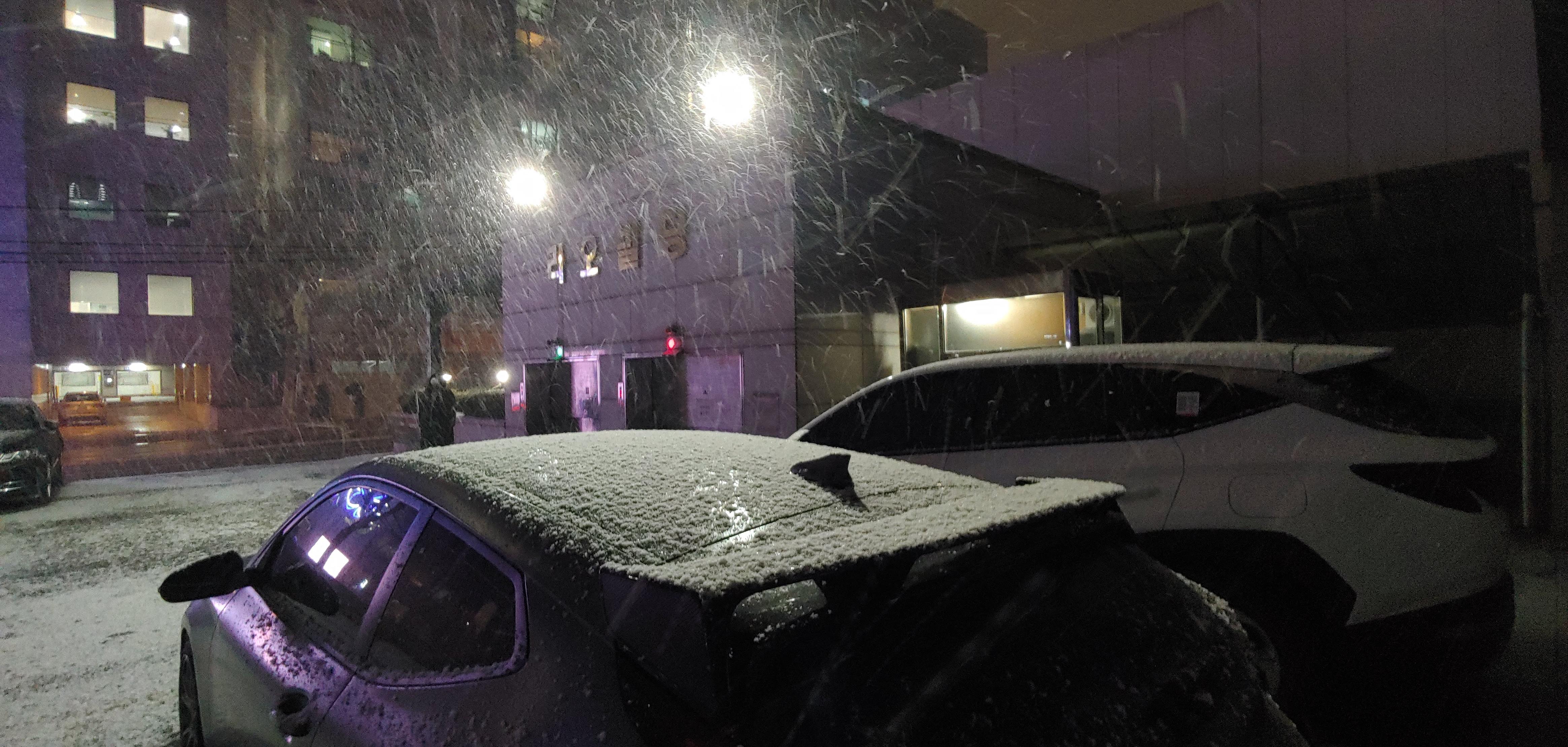 나와보니 눈이 본격적으로 내리고 있고, 오늘은 괜찮겠지만 내일 출근길이 문제다. 눈 많이 쌓여 있으면 그냥 재택 근무 하련다.