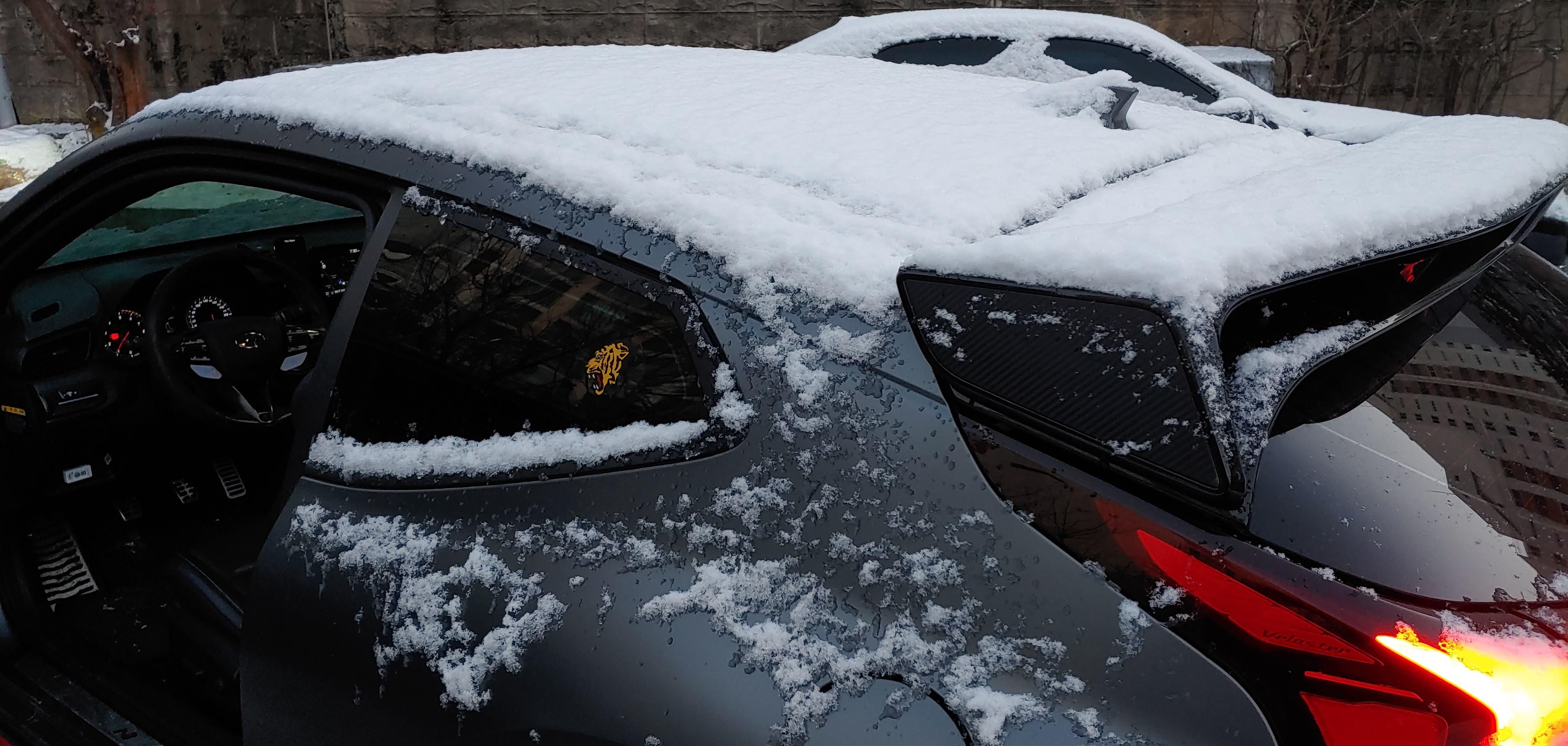 아뿔싸. 와이퍼가 얼어붙어 안 움직일 줄이야. 열심히 손으로 닦아가며 출근.
