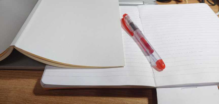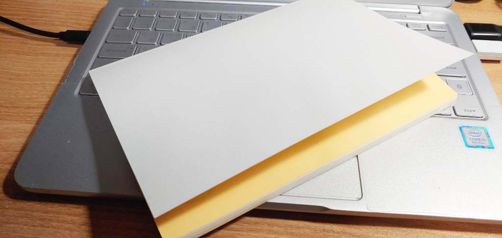 펼쳤을 때 활짝 펴지질 않는다. 역시 스태플러로 가운데 박은 녀석이 잘 펴지고 그래야 필기하기 편한데..