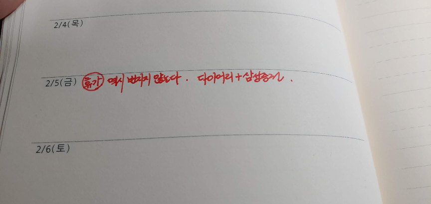 왼편 페이지는 다이어리 전반부, 오른편 페이지는 다이어리 후반부에 위치하니 워드로 작성 시