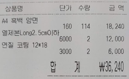 A4용지에 양면으로 인쇄하는 비용이 장당 160원? 집에 와서 이 글을 쓰며 보니 뭔가 계산이 잘 못 된 듯하다.