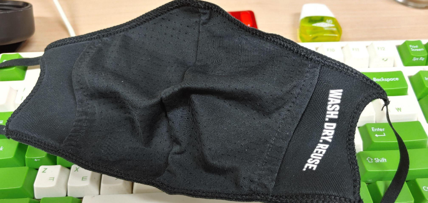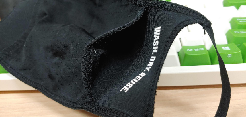 겉보기엔 패션 마스크. 하지만 운동 바지처럼 안쪽엔 내피가 별도로 있고 원한다면 마스크와 내피 사이로 추가 필터를 넣을 수 있다.