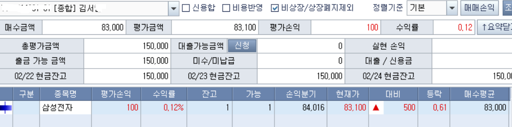 오늘 점심 시간에 사랑하는 딸 서의 선물로 삼성전자 1주 구매.