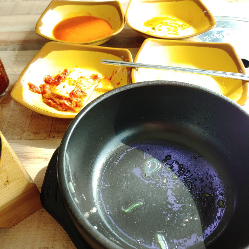 공기밥이 아니라 솥밥이 나온다. 조선시대 임금님이 드셨다는 이천쌀이라 그런가? 밥 맛이 남다르다. 미끈하고 찰지다. 표현하기 어렵다. 그냥 맛있다. 집에서 먹는 밥, 햇반, 회사 식당 밥, 회사 근처 식당밥 모두 비슷한 맛인데 이 집 밥은 다르다. 단순히 솥밥이라 그렇다고 말하기엔 뭔가 더 있는 맛.