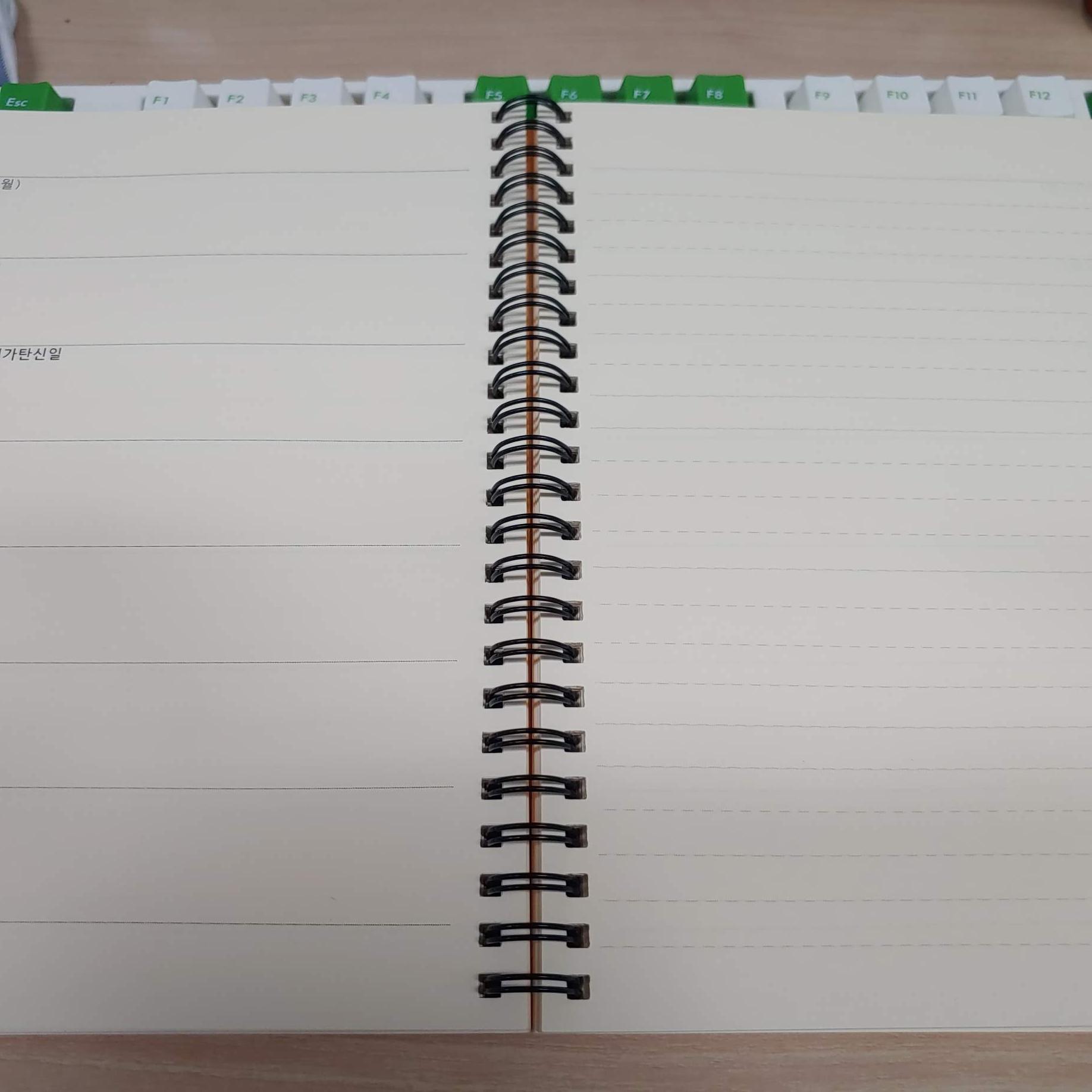 결과적으로 완성된 링제본 다이어리 종이가 2부류로 종이 크기가 살짝 다른 상태.