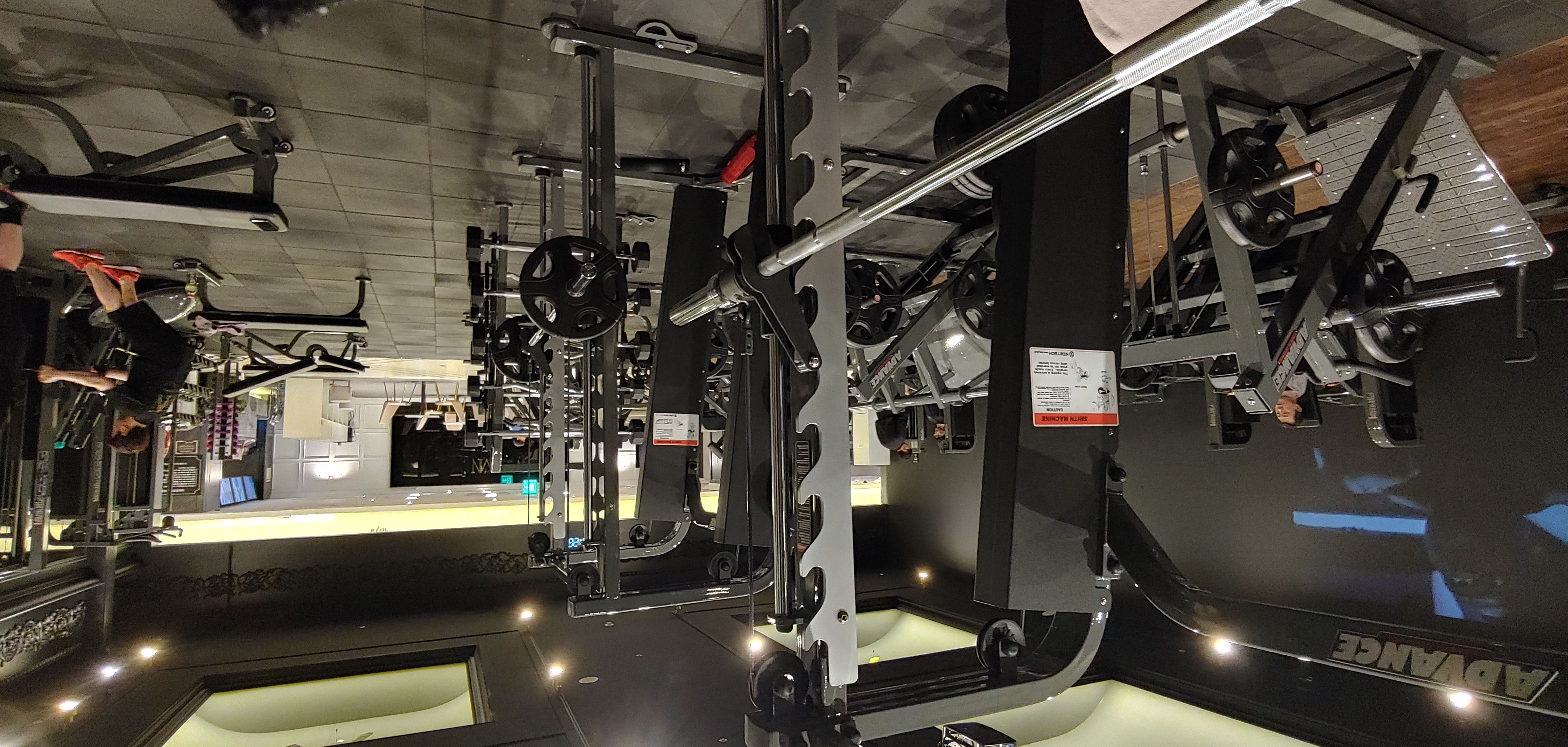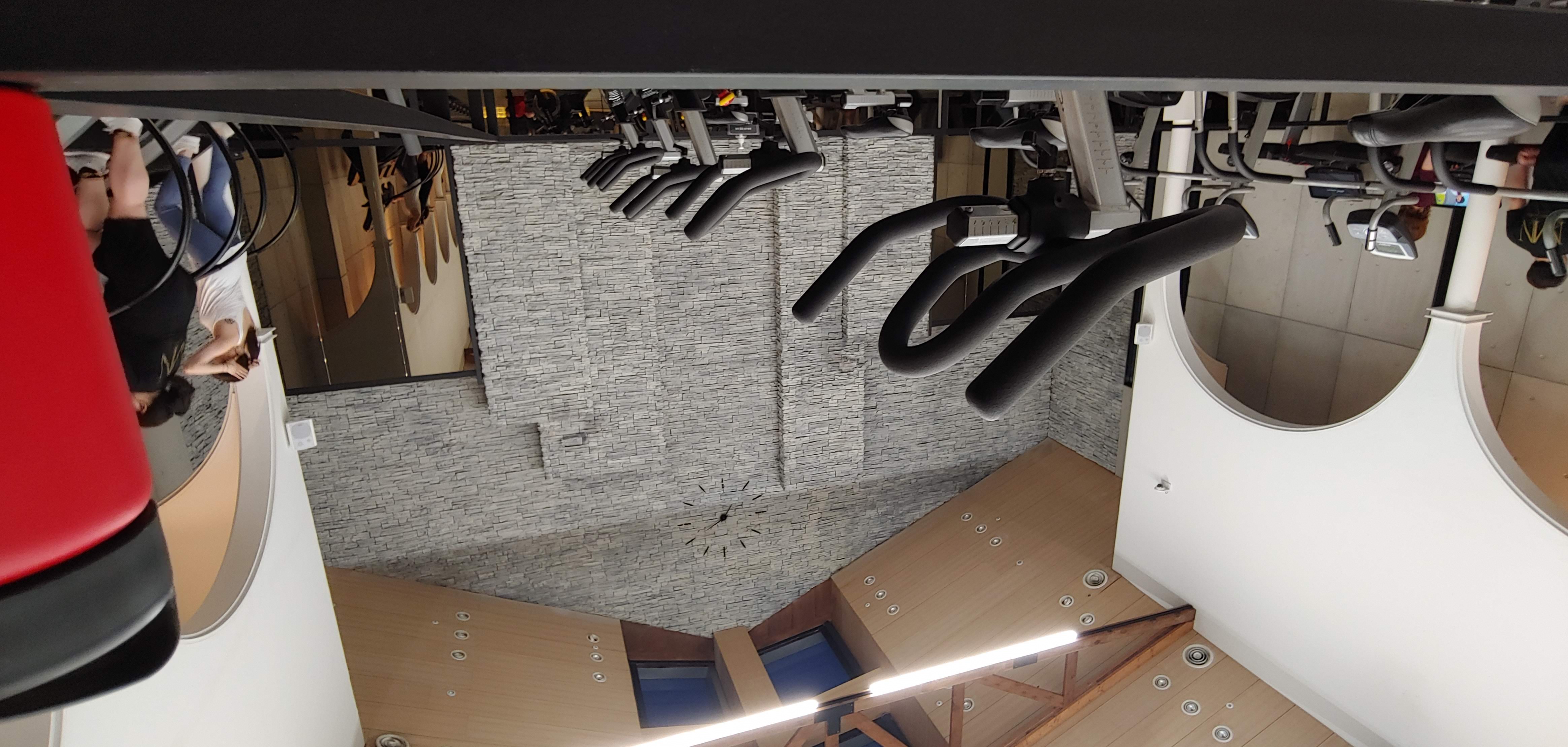 아마 우리나라 헬스장 좀 천정고가 제일 높을걸요? 여기가 아마도 전에는 예식홀이었던거겠죠. 심지어 저 천정은 유리로 되어 있어 햇빛이 들어옵니다.