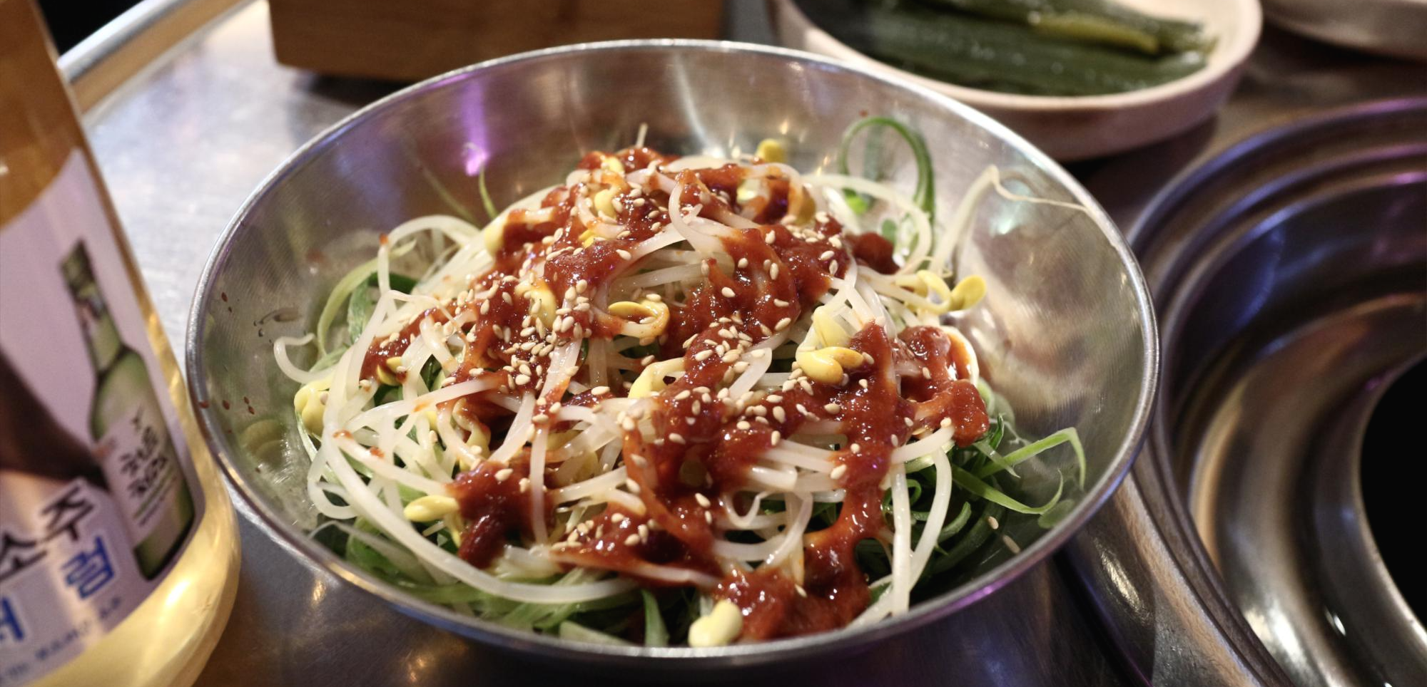 대신 저 파무침이 예술. 고소한 냄새가 솔솔 나고 파에 콩나물 그리고 참기름에 맛있는 소스까지. 신비할 정도로 저 녀석이 맛있었다.