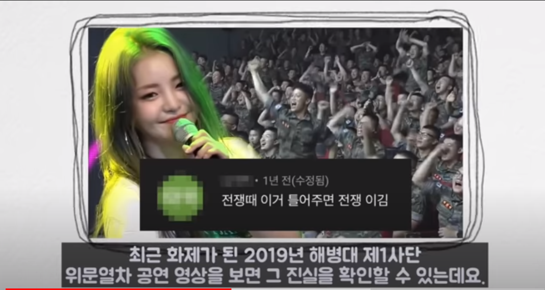 군대 위문공연가서 저렇게 환한 표정으로 웃으며 노래를 부른 여성 가수가 전에도 있었단 말인가?