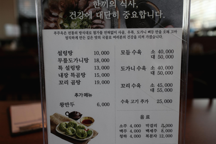 그렇다. 푸주옥은 단백하지만 백치미가 있는 국물에 취향에 따라 김치와 깍두기를 적당히 가감해서 먹으면 되겠다.
