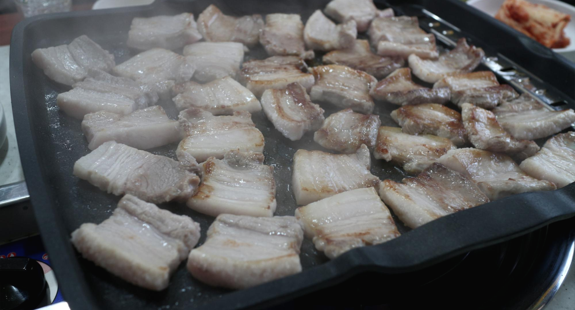 우리 식당은 보기엔 특출날 것이 없는 동네 가게인데 생삼겹살이 맜있으니 오늘도 쨘.