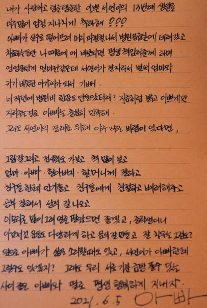 생일선물으로는 엄청난 고가의 아이폰을 얻었고 생일 당일날엔 편지를 써서 줬다.