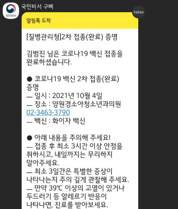 다행히 1차, 2차 접종 후에도 특별히 문제 증상은 전혀 없었다.