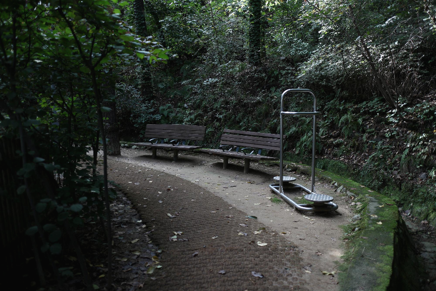 바로 집앞 건물들 사이 나무들이 우거진 속 작은 산이 숨어 있다.