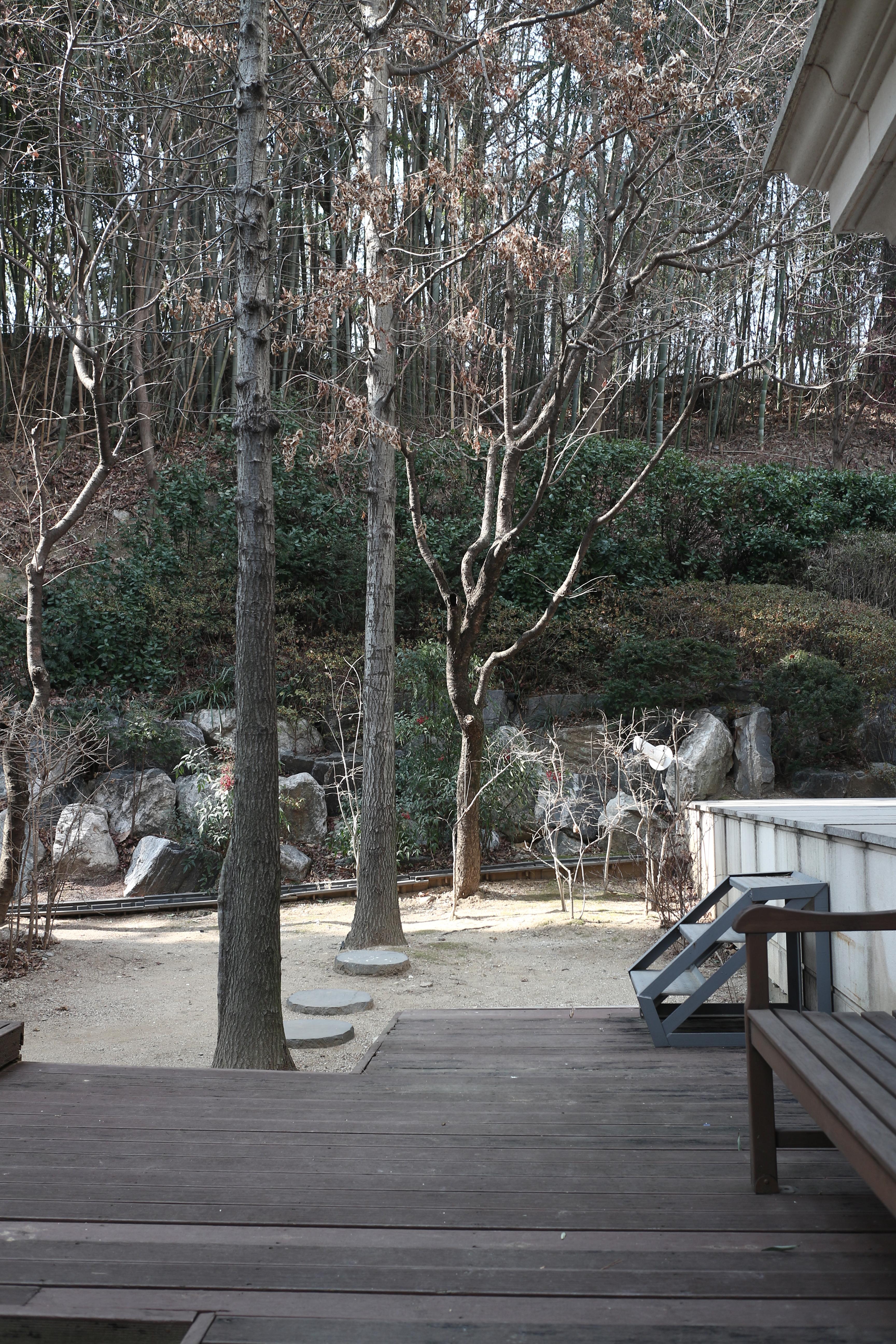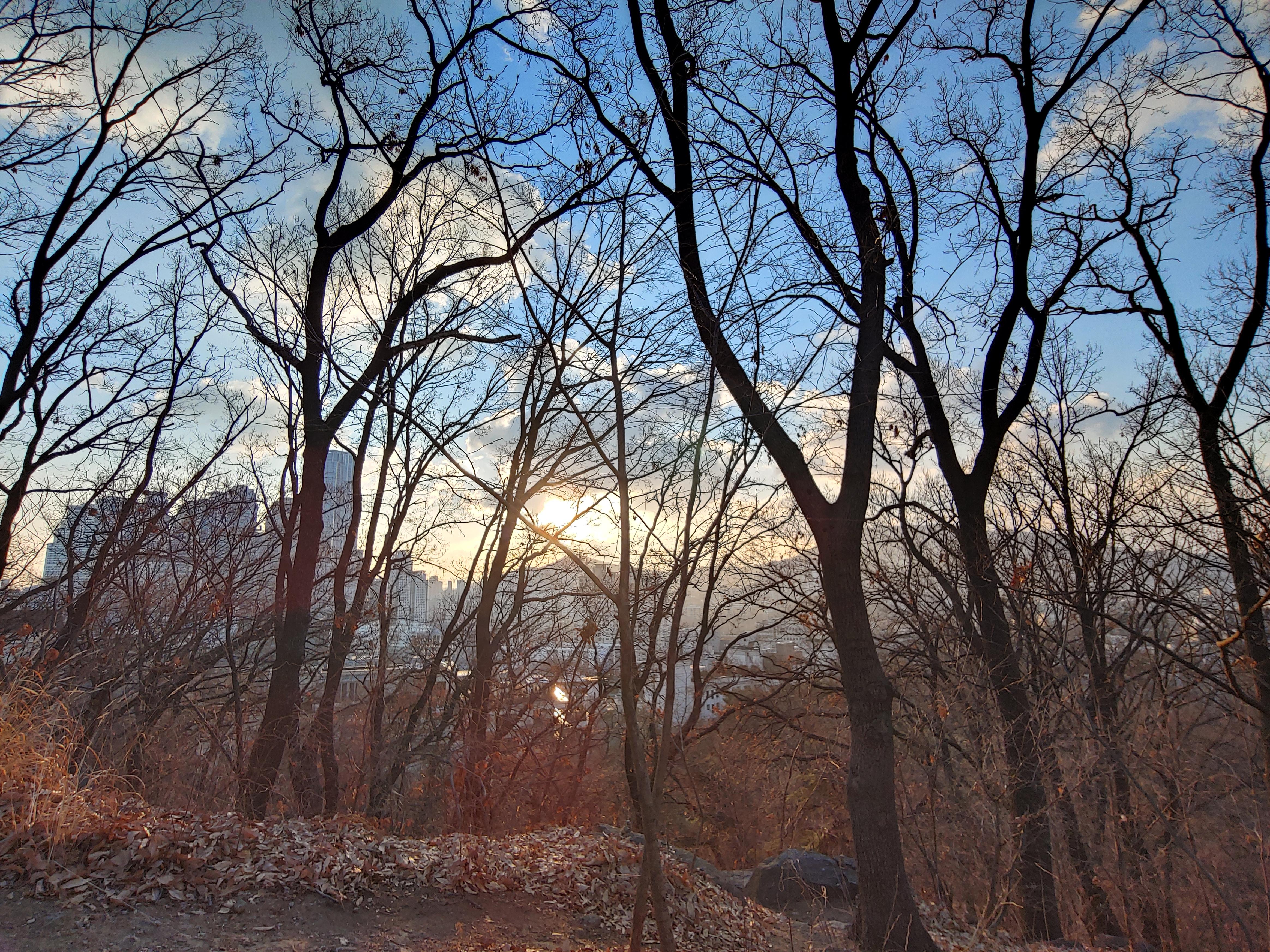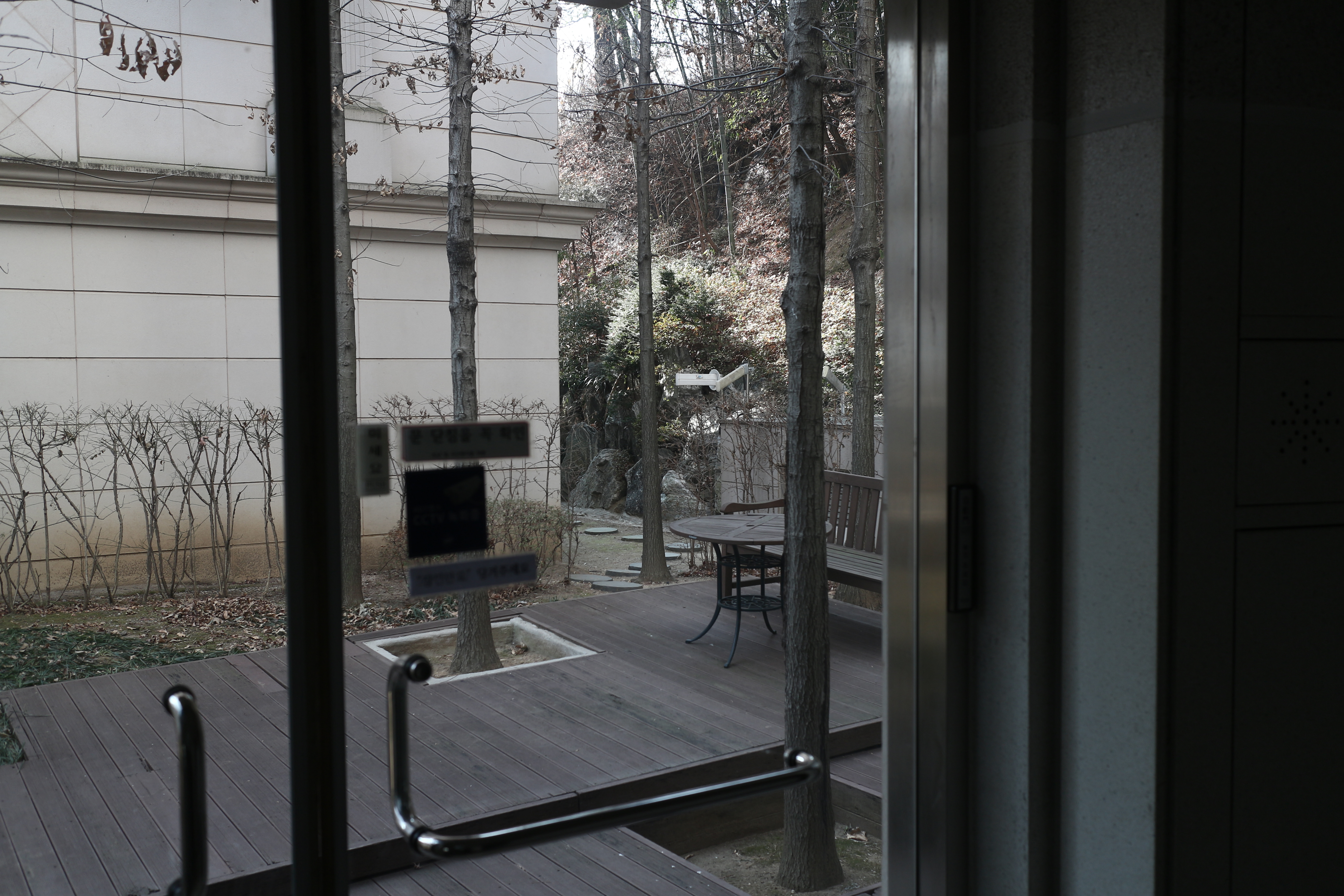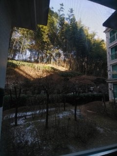 저 산과 집의 보이지 않는 경계 부분에 ADT 캡스의 경보기가 있어 함부로 접근하지 말라는 아파트 대표님의 엄명. 우리가 이사오기전 인테리어 공사를 하면서 에어컨 실외기를 다시는 분께서 바깥에서 작업하시다 경보가 울려서 난리가 났다고 한다. 그래서 나도 보기만 하지 나가보진 못 하겠다. 무서워서.