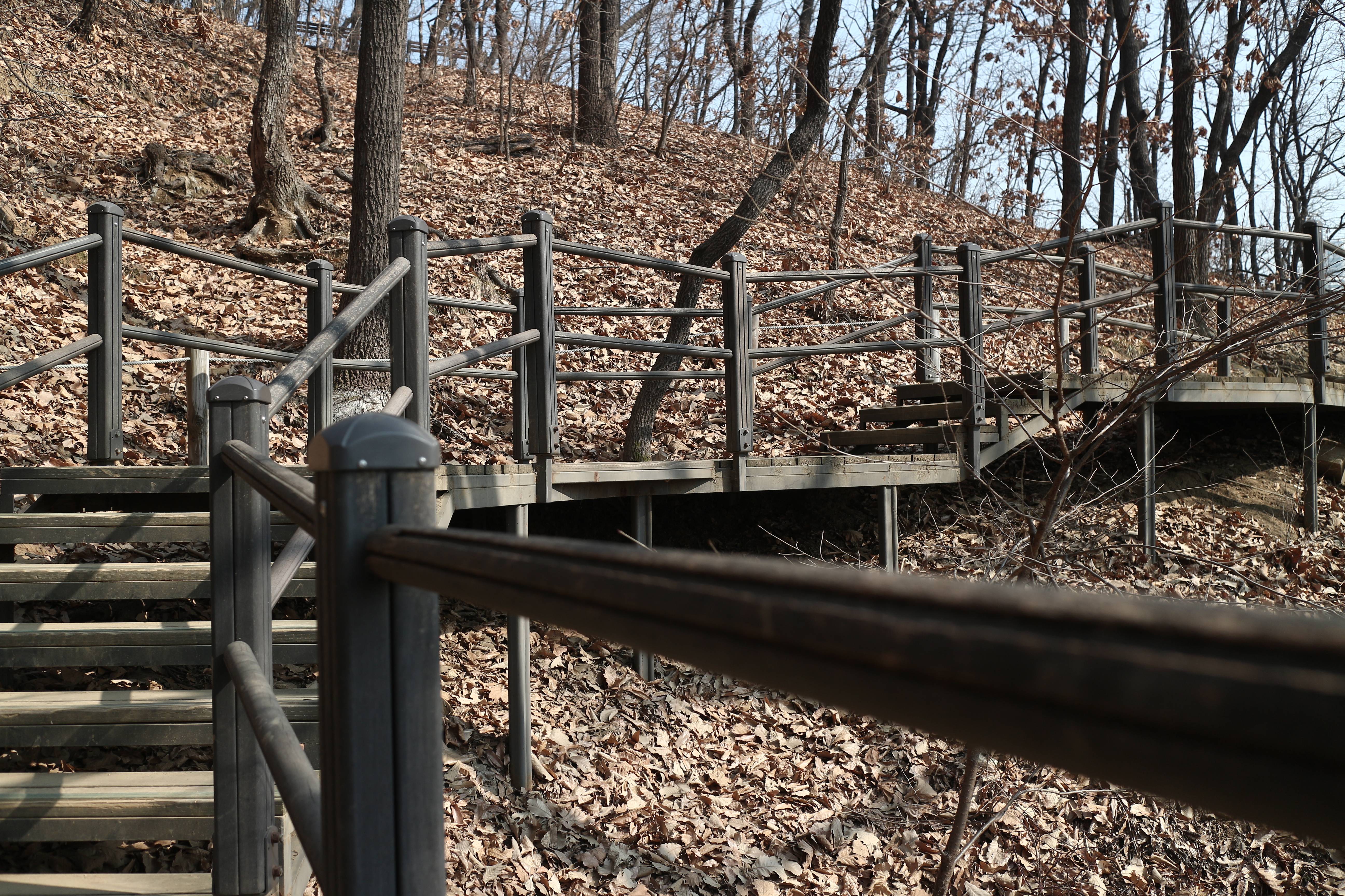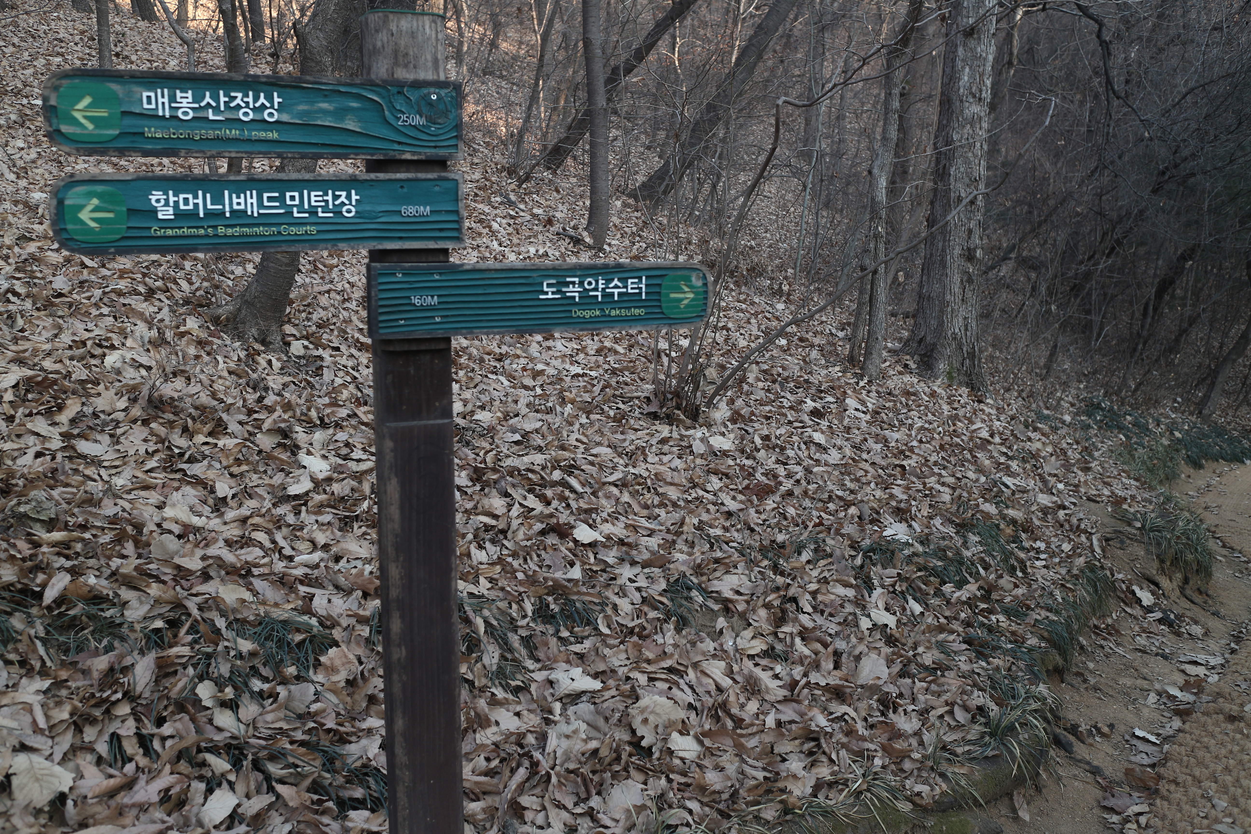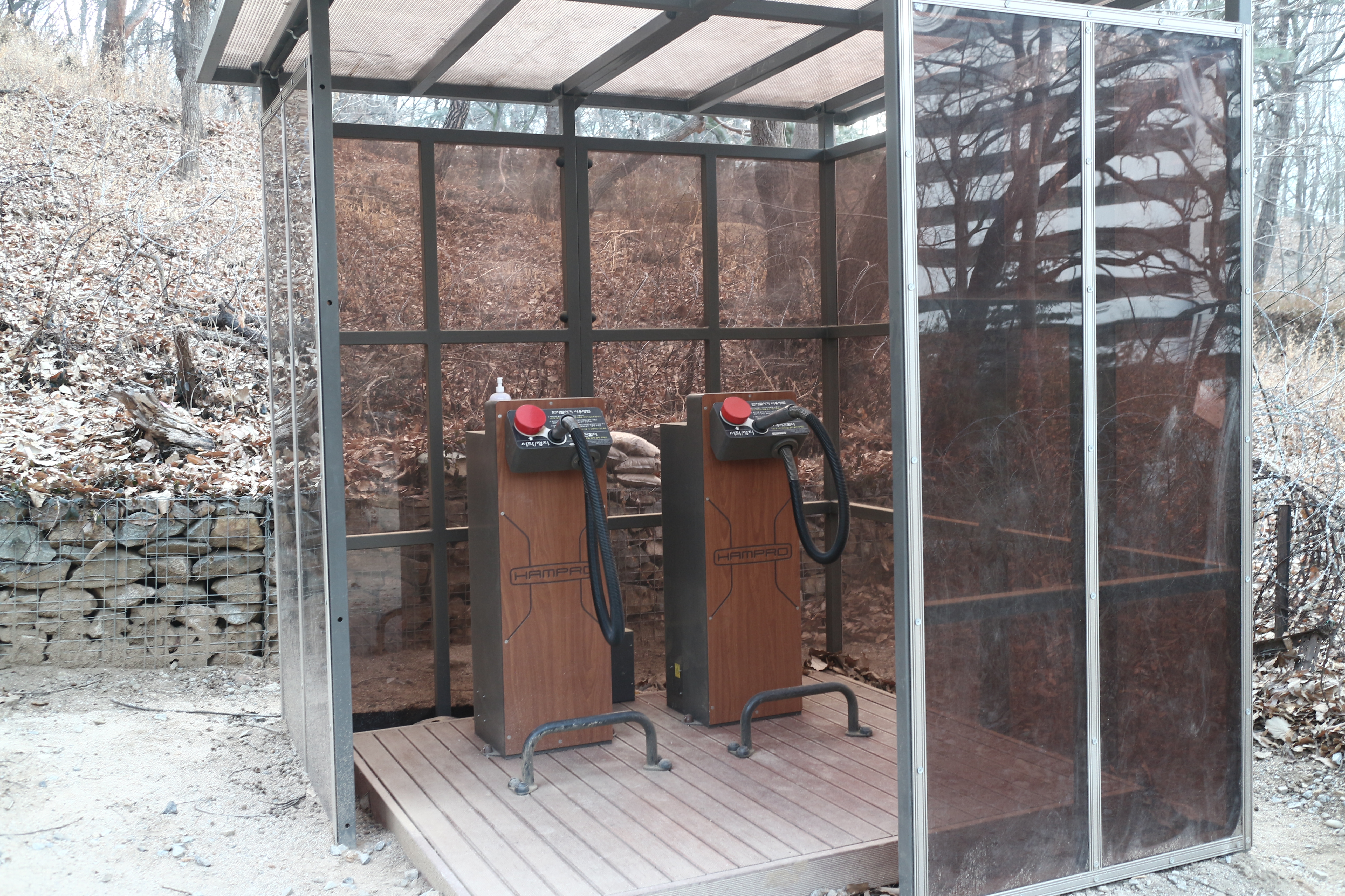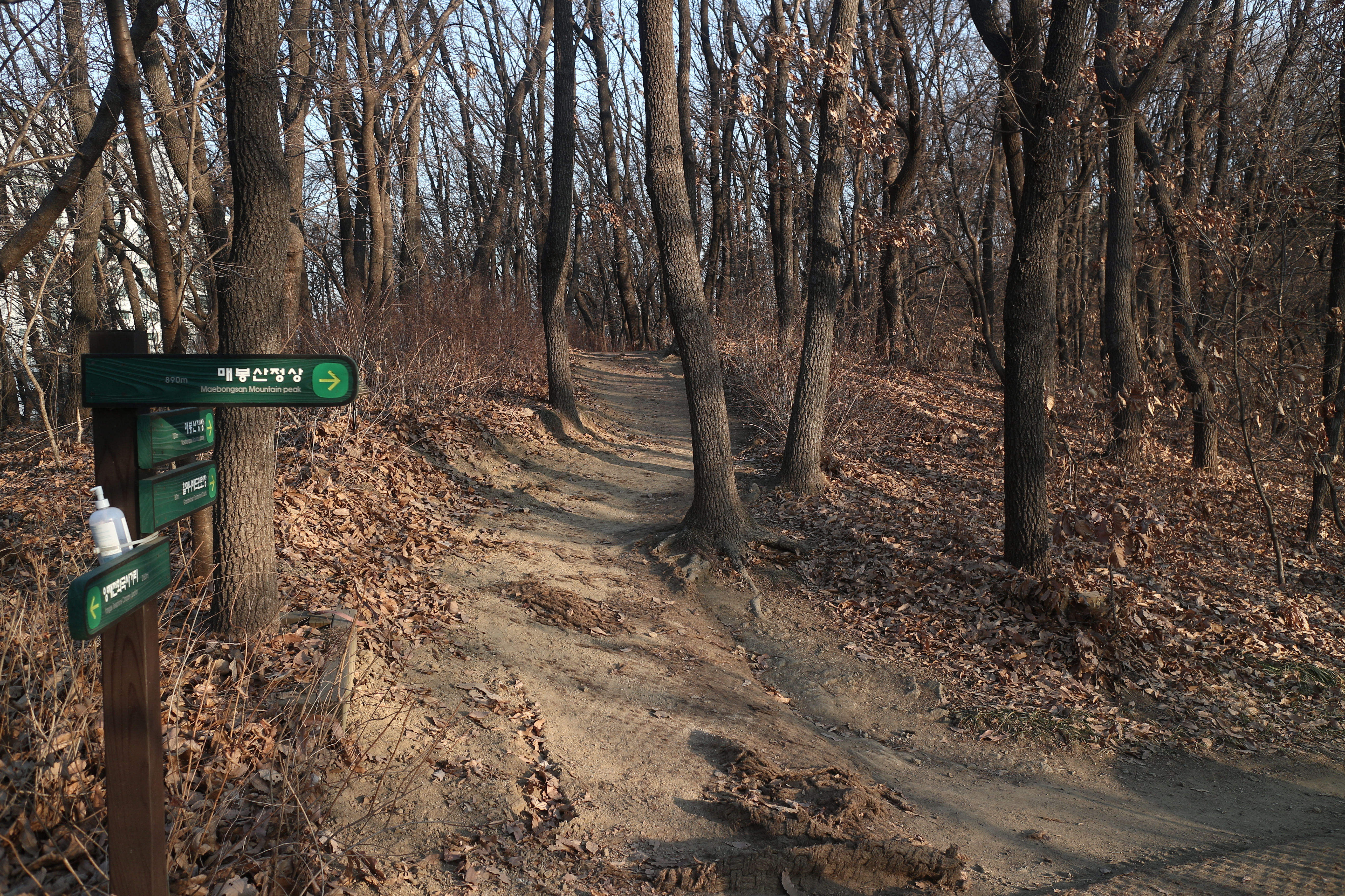 산 진입로마다 먼지 떨이기가 있어 산을 내려오며 옷에 묻은 먼지를 털어낼 수 있다.