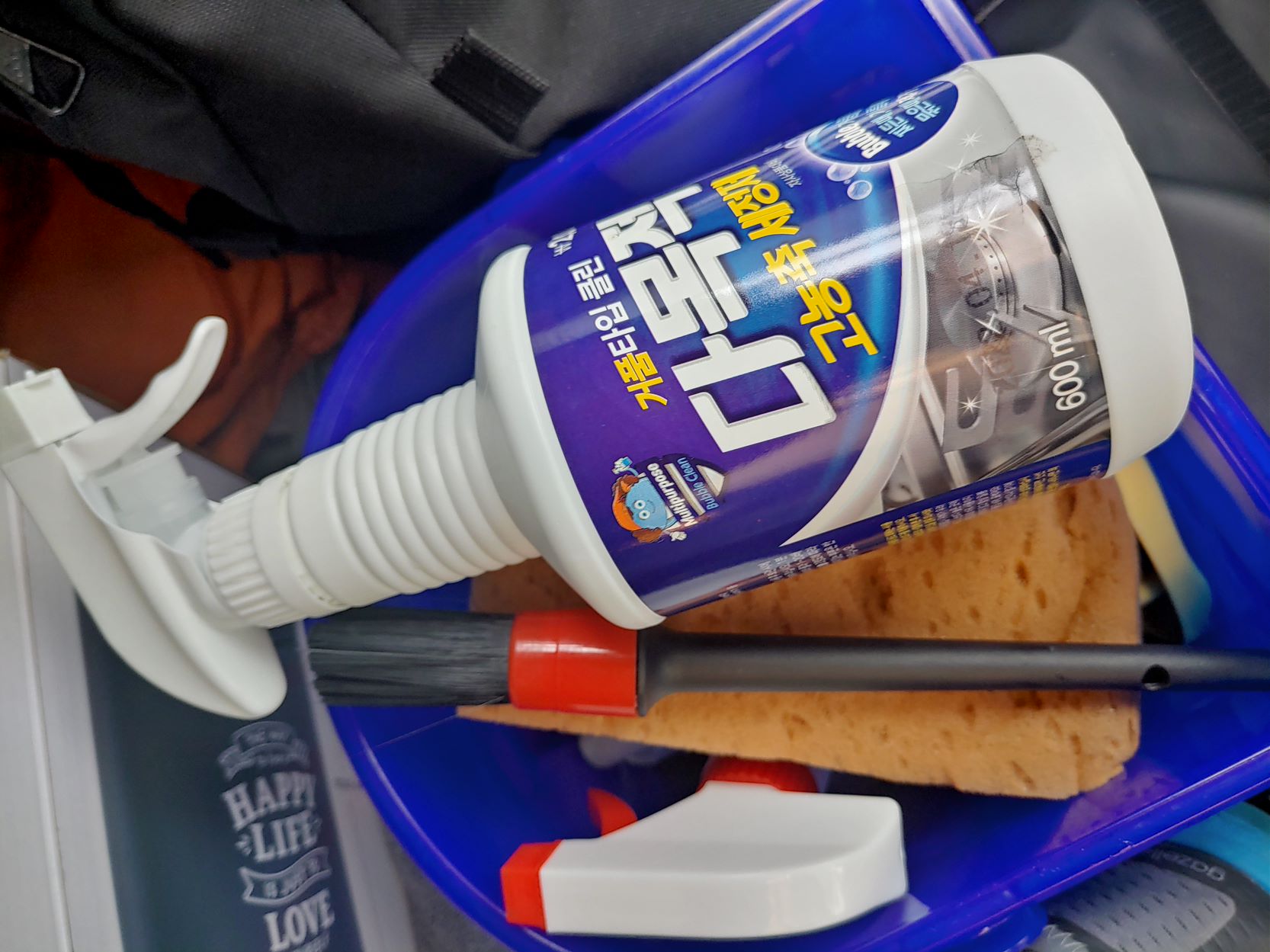 휠 세척 전용제는 너무 비싸다. 그래서 내가 하는 방법은 다이소에서 파는 PB-1 세척제. 2천원(3천원이었던가?) 짜리 1통과 이 세차용 붓이면 끝.
