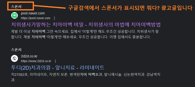 첫번째 스폰서 링크를 누르면 "치아미백 하는 방법 이 글로 종결합니다." 라는 제목의 네이버 포스트가 듭니다.