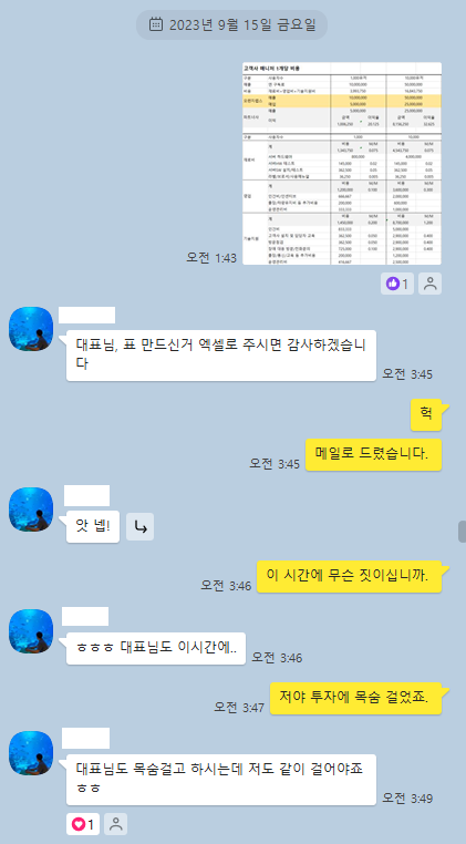08/08 투자를 받기 위해 부산 **사에 사업 계획서를 보냈습니다.