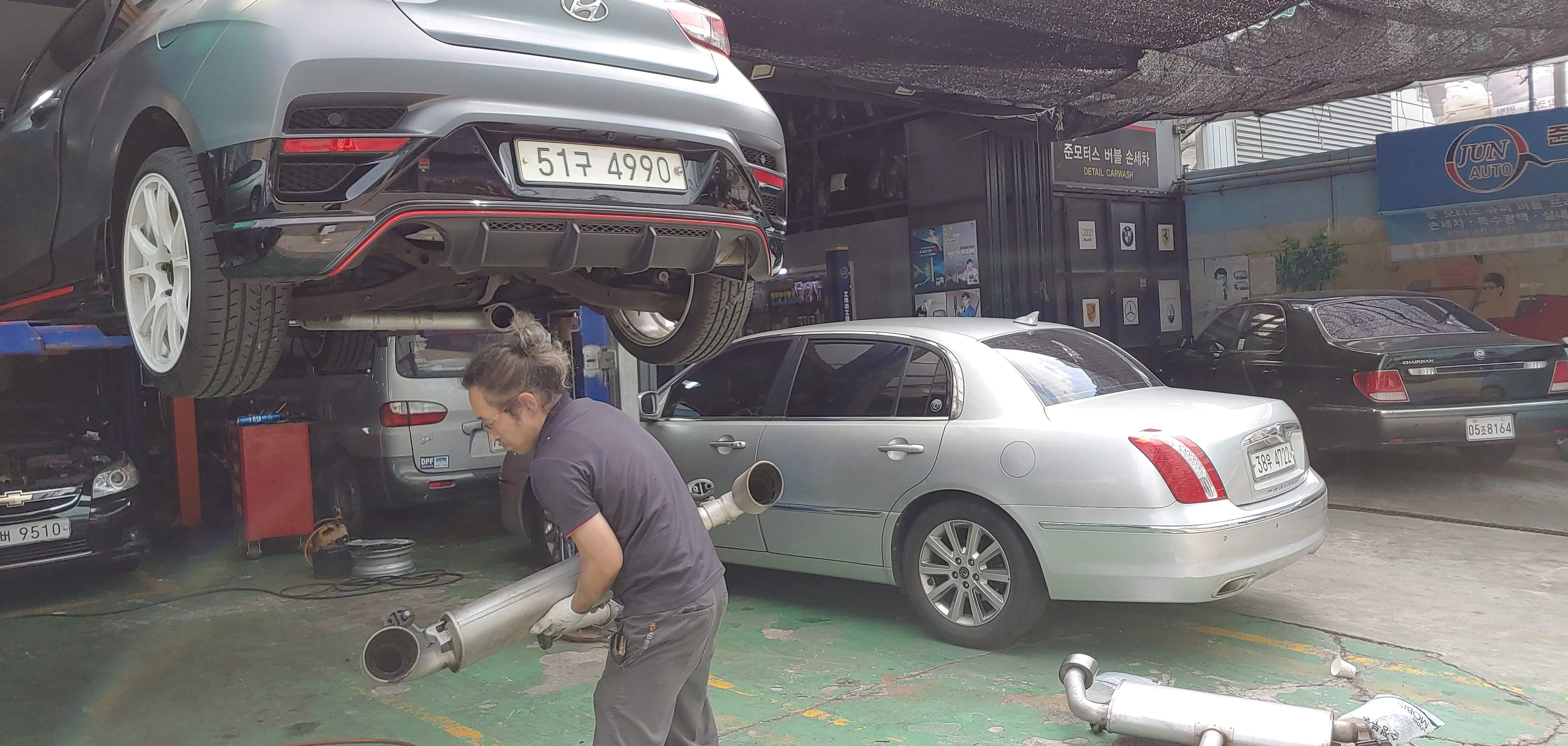 교환 후 주차. 이후 여기 저기 다니느라 2번 더 주행을 했는데 시동을 끄고 다시 시동을 키고 주행을 할 때마다 배기음이 달라집니다. 수동 배기때 없던 중저음이 들리기 시작.