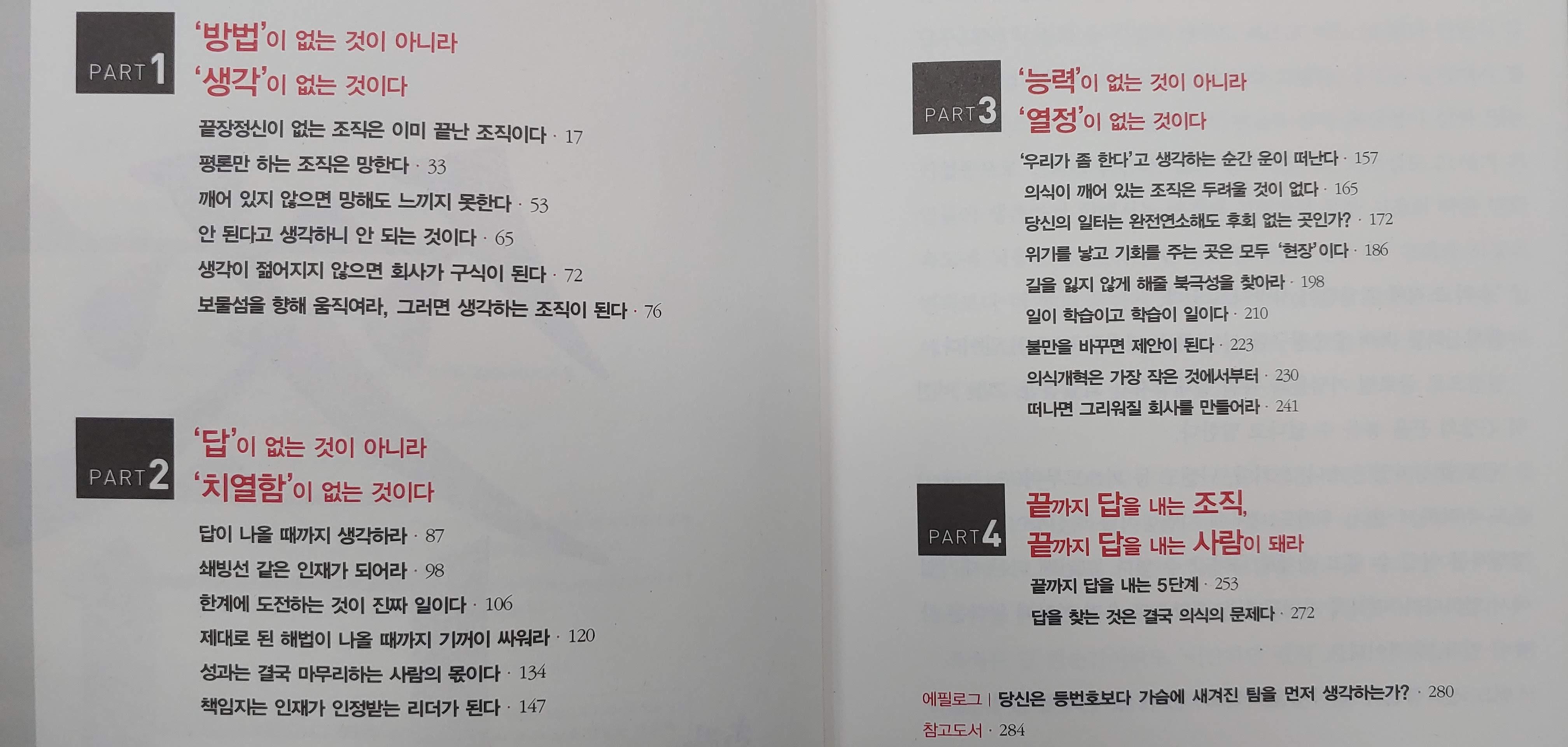 답이 없는 것이 아니라 치열함이 없는 것이다. 능력이 없는 것이 아니라 열정이 없는 것이다. 끝끝내 답을 찾는 정신이 당신과 회사를 실린다!